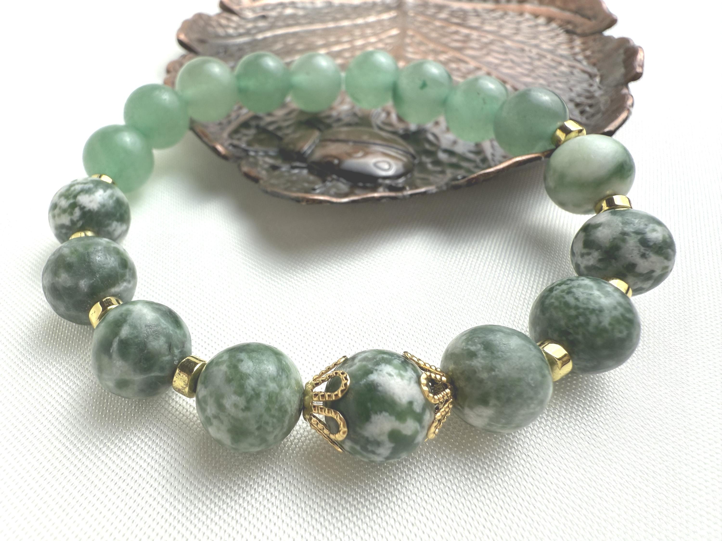 • Natural Tree Agate, Green Aventurine, and Hematite beads