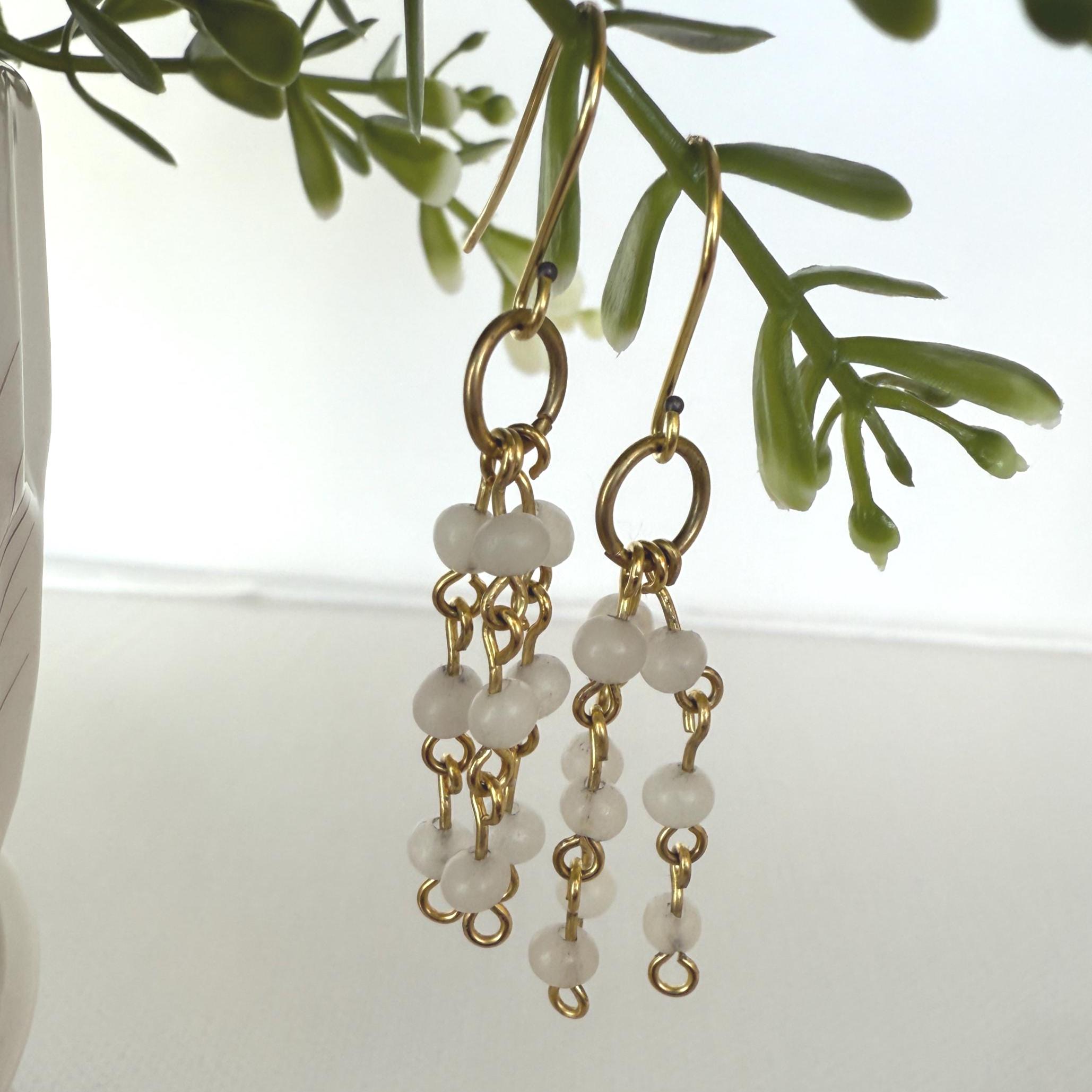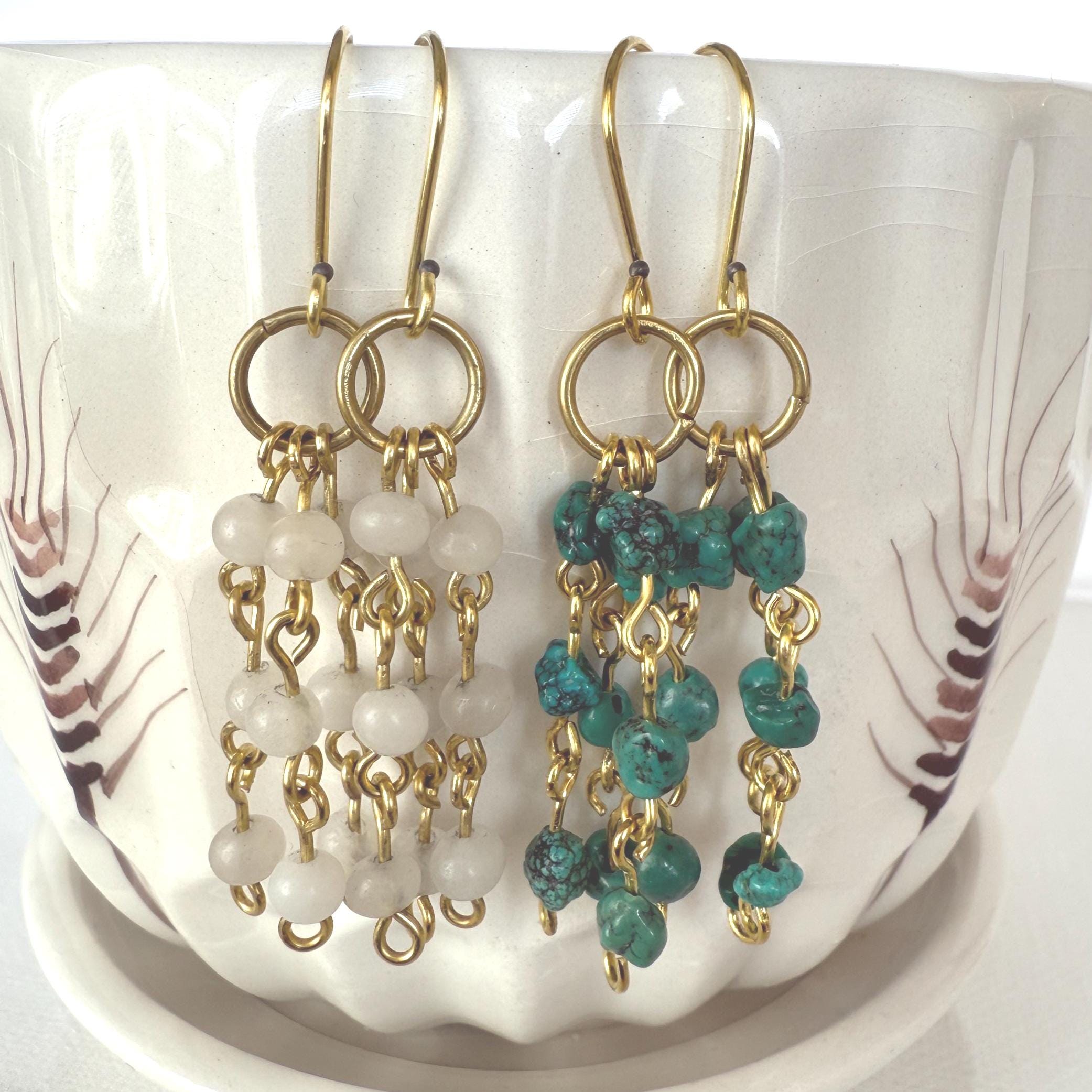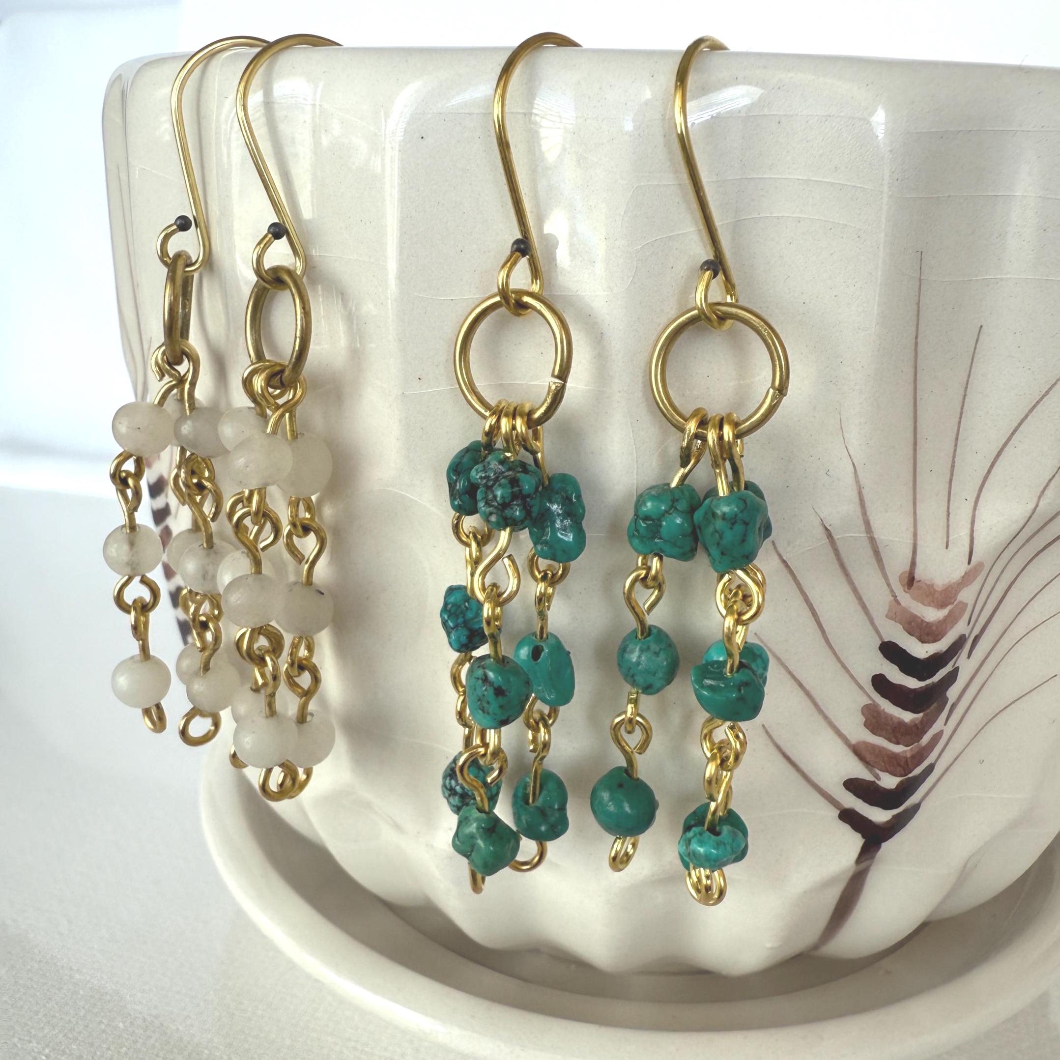 White & Turquoise Blue Dangle Earrings — delicate handmade gemstone earrings available in two beautiful color variations: White or Turquoise Blue. Lightweight and comfortable, these dangle earrings are nickel & lead free and perfect for everyday wear or gifting.