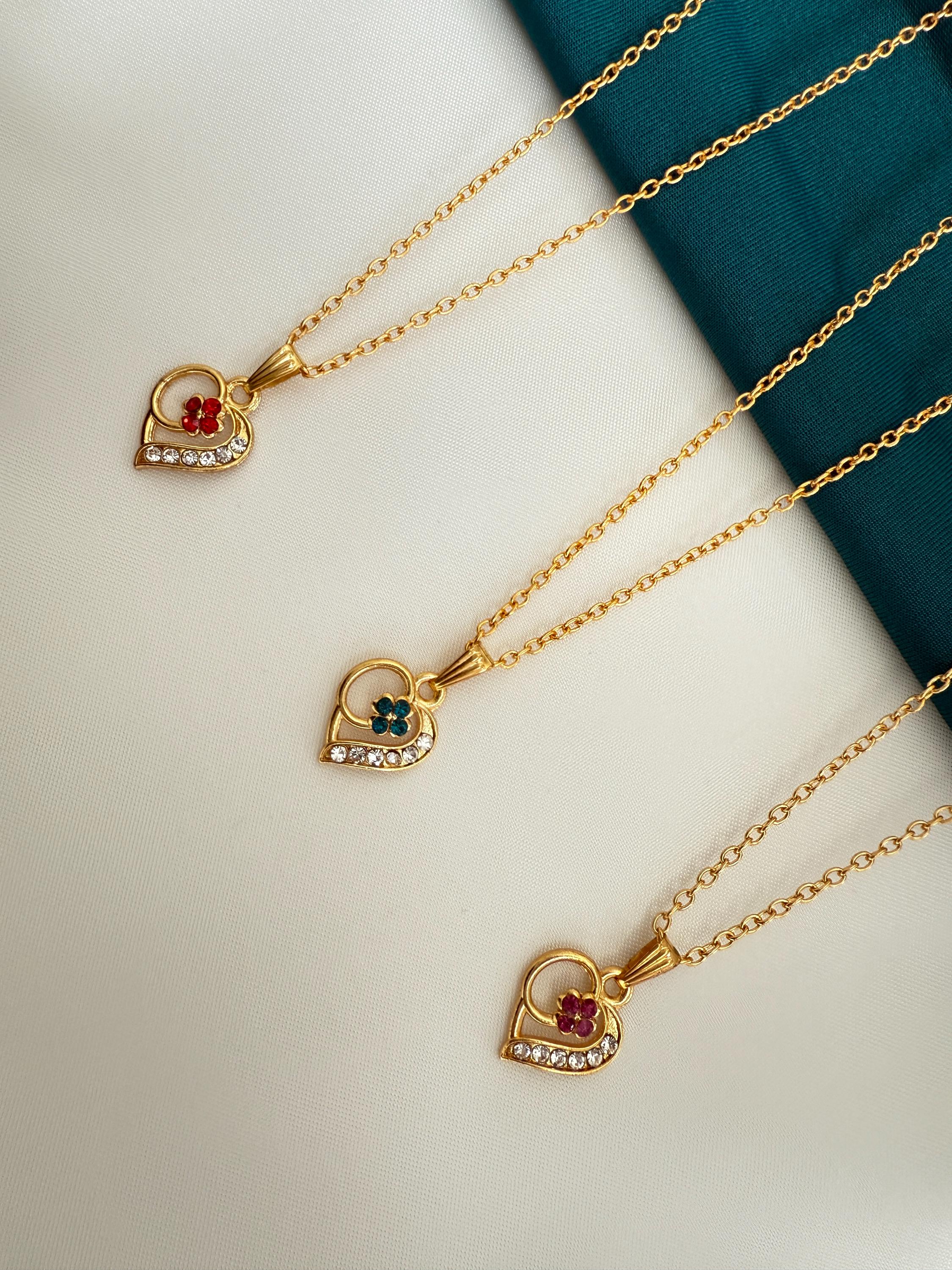 Pendant: Heart inside Clover design ☘︎ with four fashion stones