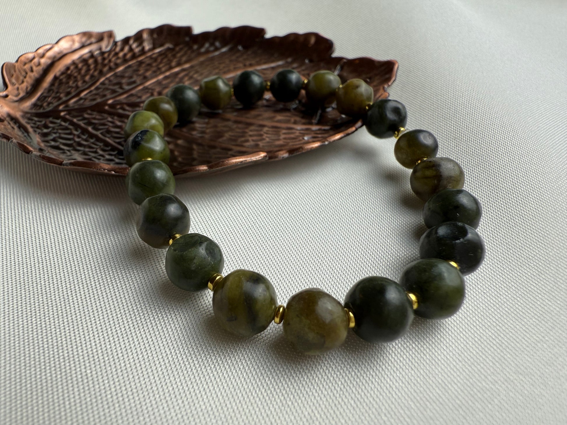 8mm Serpentine Jade Stretch Bracelet, Hematite Accents