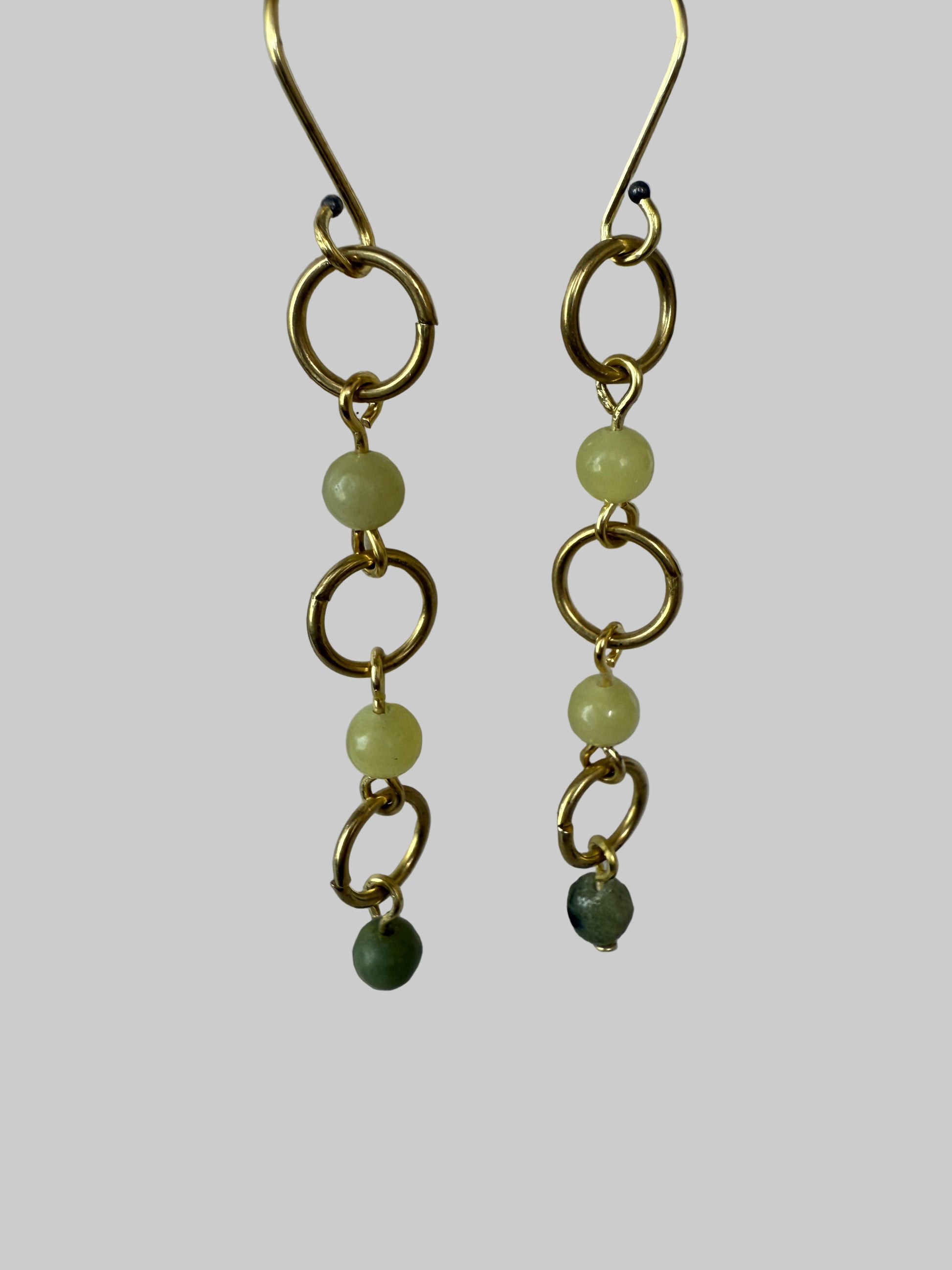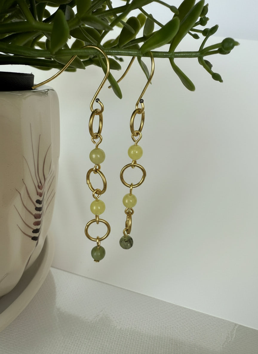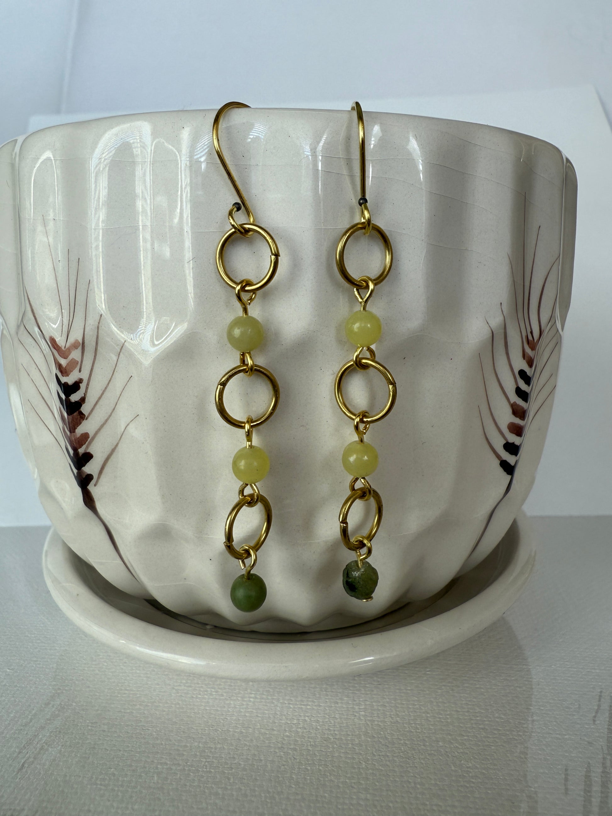 Handmade Green Serpentine Jade Bead Earrings · Brass Hooks · Nickel & Lead Free